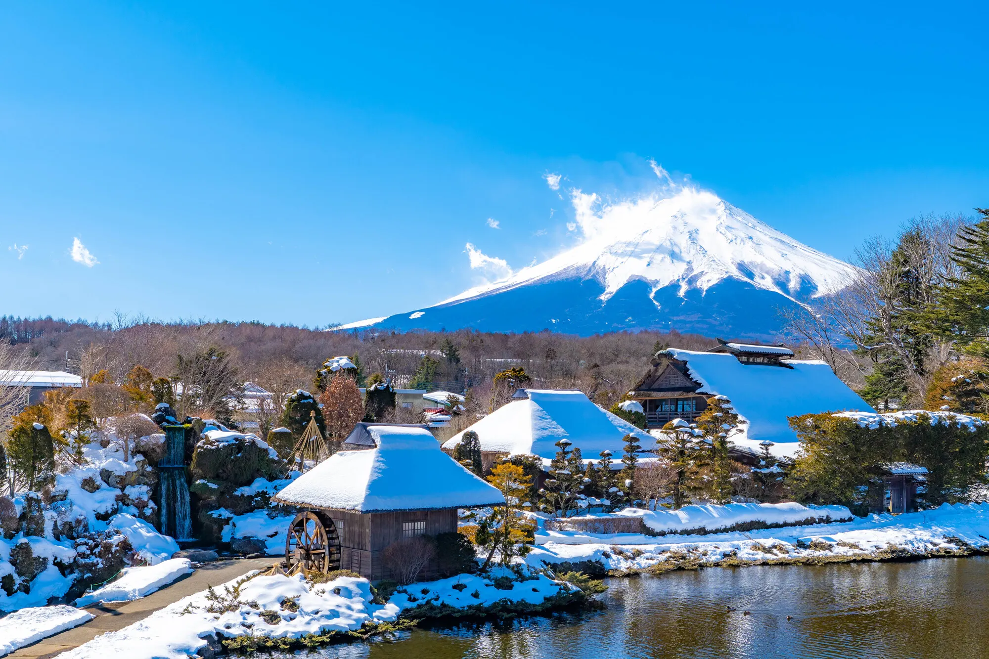 3. Khám phá làng cổ Oshino Hakkai: Làng nằm dưới chân núi, nổi bật với những ngôi nhà mái tranh truyền thống và nguồn nước tinh khiết từ tuyết tan của Phú Sĩ.